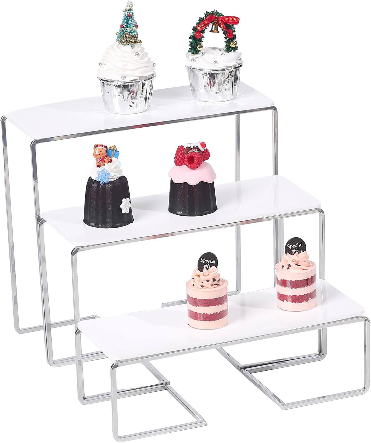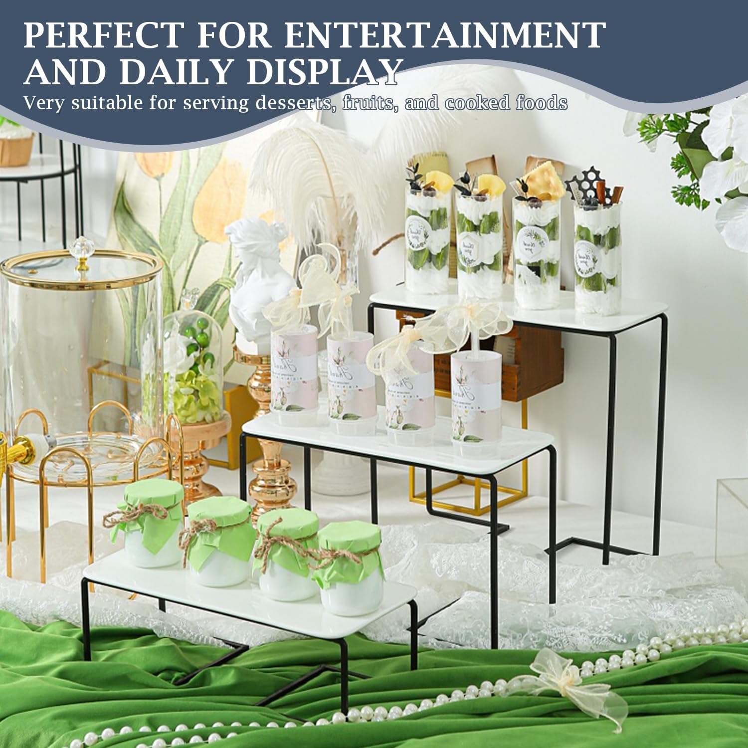 3 Tier Serving Tray, 12" x 4.5" White Plastic Tiered Food Serving Platters, Tiered Tray Stand for Party with Black Collapsible Metal Stand, Dessert Display Stands for , cupcake stands