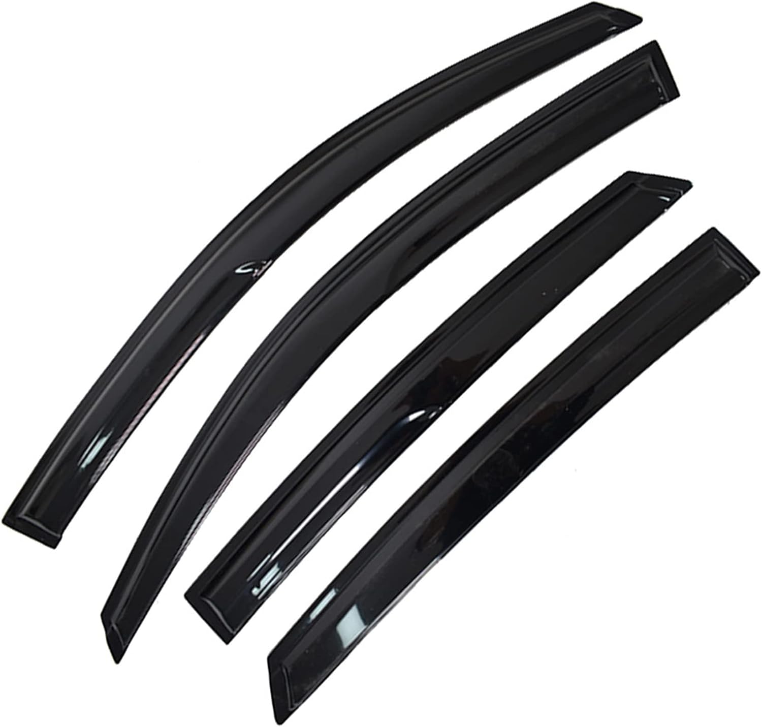 Description:Double-sided tape installationHigh quality plastic materialNo instruction includedNote:1. Please keep the installation position clean and dry during installation, and press hard for about 1 minute after installation.2. Do not drive for 12 hours after installation.3. Driving speed shall not exceed 100 km/h (63mile/h) for 24 hours after installation.4. Don't wash your car for 48 hours after installation.Package includes: 4 x window visors with double side tape