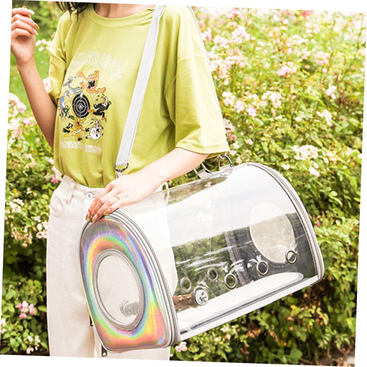 Package Include 1 x parrot carrier bag Features -Material: PU, PC Parrot Bag with Standing Rack -Color: Silver Parrot Travel Bag -Size: About 43.00X28.00X26.00cm/16.90X11.00X10.22inch Cross Body Pet Bag - You can easily buy this set of practical pet birds carrier at an Parrot Carrier. - The whole appearance design of pet carrying bag is simple and generous Birds Carrying Pouch. - It has a simple design, but very practical in use, giving you a using experience Travel Parrot Pouch. - You can use it as a cross body bag, a shoulder bag or a handbag Outdoor Carrying Bag. - The shoulder strap can be removed, convenient and practical to use Shoulder Pouch.Goods DescriptionPet Birds Container Are you still looking for a pet parrot carrier bag? if so, our bag is carefully prepared for you.Shoulder Pouch Featuring transparent and breathable design, very portable to carry, which makes you more convenient.Breathable Pet Bag It is also an your friends who have a pet parrot