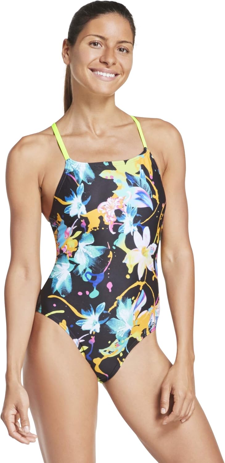 This colorful swimsuit is designed for durability, thanks to endurance fabric that lasts through several seasons. An adjustable tie back lets you customize the fit and comfort with each stroke.
